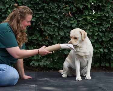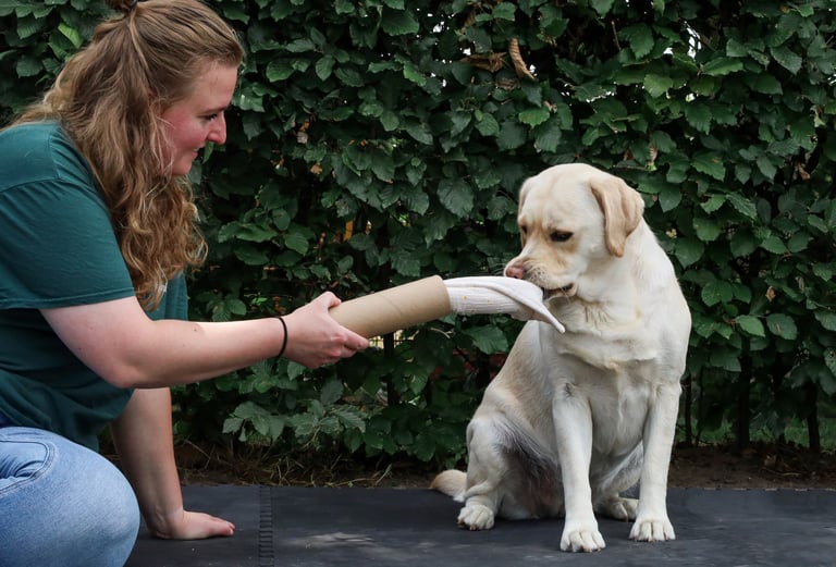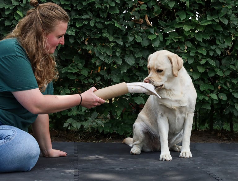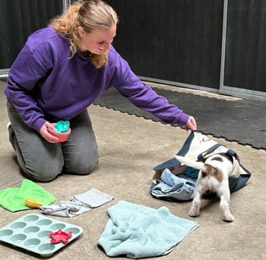 Ik help je om verrijking welzijnsgericht toe te passen, afgestemd op de voorkeuren van jouw hond. Als bijna gediplomeerd Hersenwerkbegeleider en gediplomeerd voedingsadviseur voor honden begeleid ik jullie persoonlijk, online of bij je thuis, zodat jullie elkaar beter begrijpen, de communicatie verbetert en jullie band groeit, met vooral veel plezier samen.