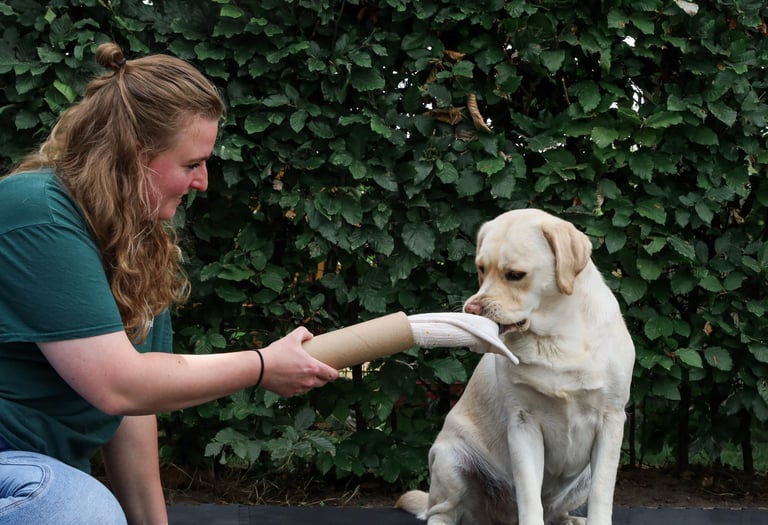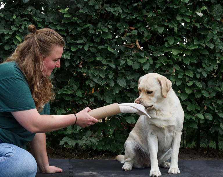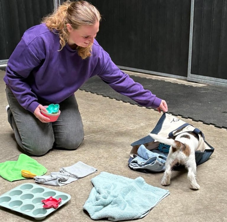 Ik help je om verrijking welzijnsgericht toe te passen, afgestemd op de voorkeuren van jouw hond. Als gediplomeerd Hersenwerkbegeleider en voedingsadviseur voor honden begeleid ik jullie persoonlijk, online of bij je thuis, zodat jullie elkaar beter begrijpen, de communicatie verbetert en jullie band groeit, met vooral veel plezier samen.