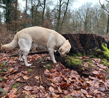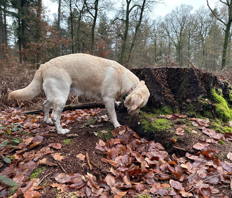 Tijdens een Snuffel wandeling staat juist de mentale voldoening centraal. Snuffelen is voor honden intensief en waardevol. Het helpt om prikkels te verwerken en spanning los te laten.